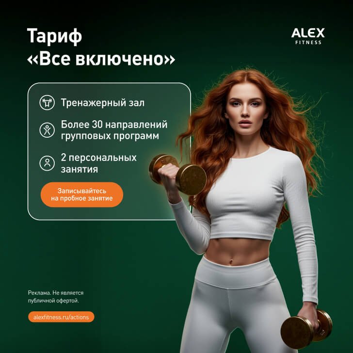 Индивидуальный подход и лучшие предложения по продвижению идей спорта и здорового образа жизни в клубах ALEX FITNESS.
